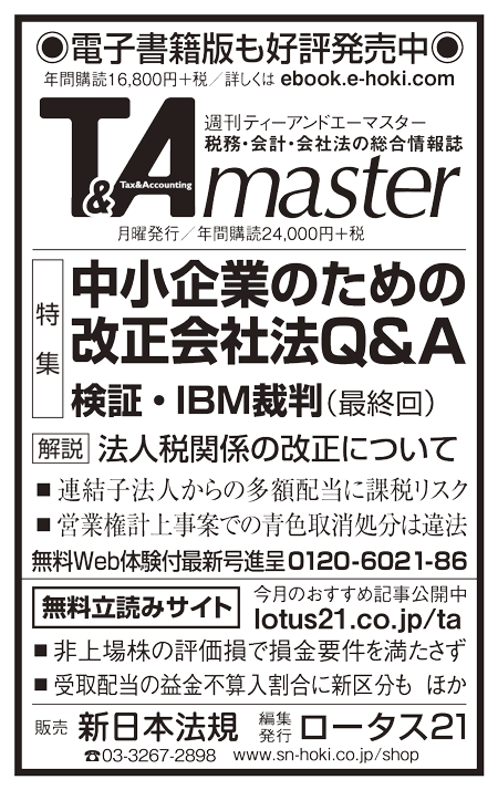 税務・会計・会社法は目まぐるしく改正され、更に複雑に関連しています。このため、従来の単独分野の専門誌では、実務上の対応が遅れてしまうのが現状です。3分野の個々の情報をお伝えするとともに、それらの関連を明らかにするT&Amasterは、今までにない一歩先を行く専門誌です。