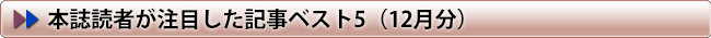 記事データベース 2週間の無料体験実施中。 創刊号から今週号までのすべての記事が全文検索可能。速報ニュースや雑誌未掲載の資料も多数収録。ウェブサイトを通じて読者のみなさまをサポートします。 ■■すべての記事がWEBで読める■■ 記事データベースをお試しください ○2週間の無料体験はこちら ○サンプルページはこちら