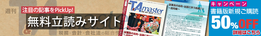 税務・会計・会社法等は毎年のように改正され、更に相互に関連し実務を行っていく上では切っても切れない関係となっています。週刊T&Amasterは税務を中心に置きつつ、実務家に必要な会計、会社法等の重要な情報も漏れなく早くお伝えします。